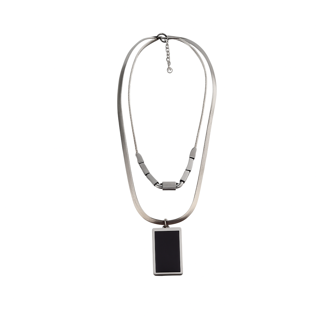 Colier "Duo Stratificat Urban" cu Pandantiv Negru